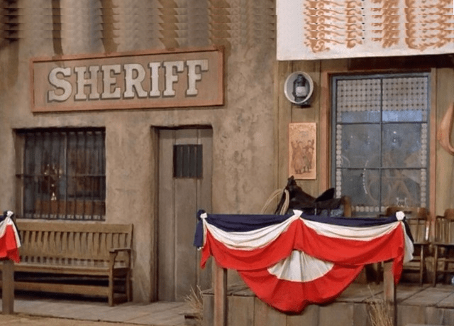 “Lucy the Sheriff” (1974) ~ Lucy finds out that her grandmother was the first woman sheriff of a Montana town that is celebrating its centennial. She is asked to play her grandmother at the celebrations, which include the recreation of a bank robbery. Lucy is enjoying playing lawmaker until a couple of genuine robbers interrupt the celebration and take her hostage!