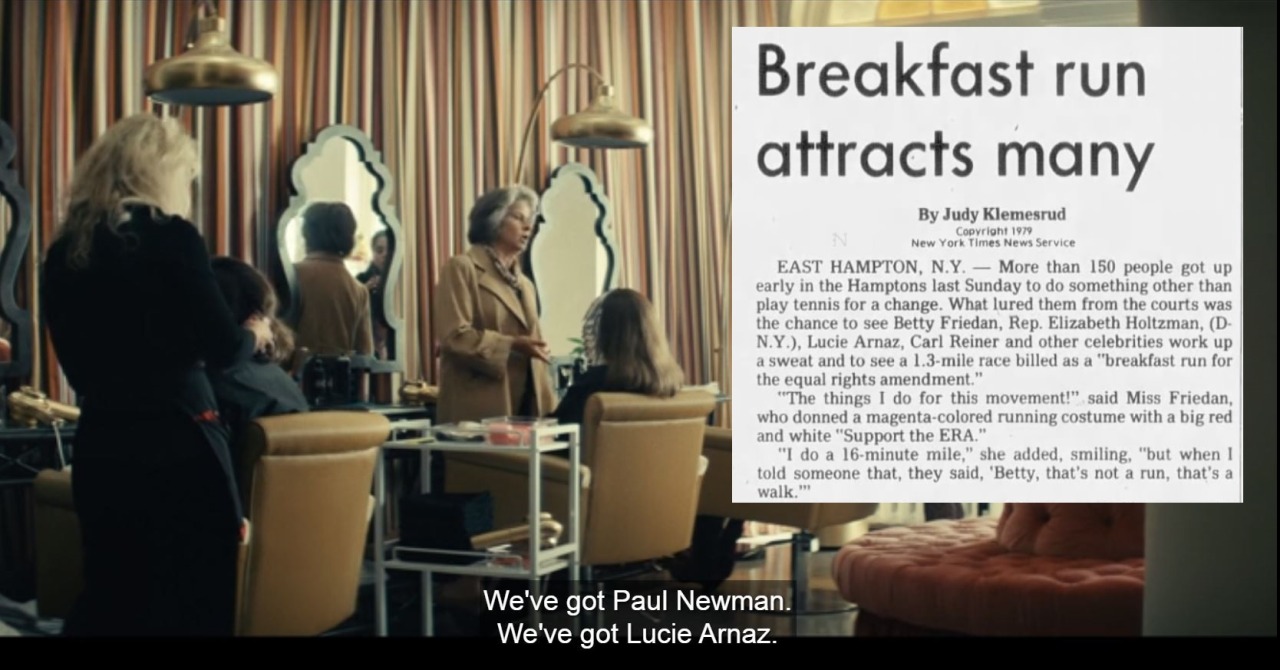 Lucie Arnaz was mentioned on MRS. AMERICA (May 27, 2020) in the episode “Reagan”. On Sunday, September 2, 1979, Arnaz participated in a ‘Breakfast Run for the ERA’. In the FX mini-series, Betty Friedan (Tracey Ullman) talks to Gloria Steinem (Rose Byrne) about the event.